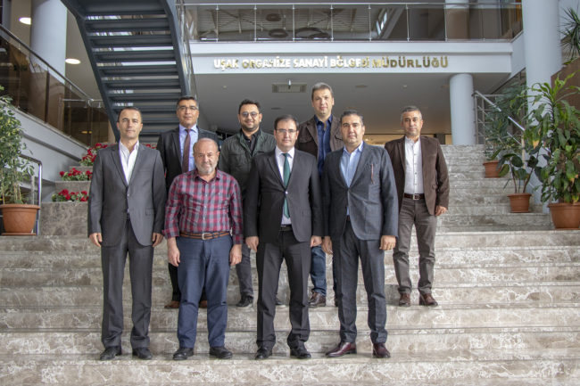 Uşak Organize Sanayi Bölgesi Yönetim Kurulu Başkanı Halil Ağaoğlu ve Uşak Organize Sanayi Bölgesi Müdürü Namık Gök; Uşak Üniversitesi Rektörü Prof. Dr. Ekrem Savaş’ı makamında ziyaret ettiler.
