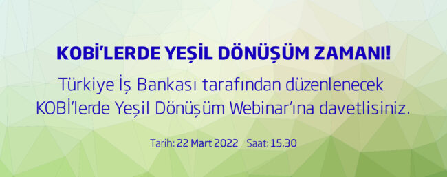 Türkiye İş Bankası tarafından düzenlenen çevrimiçi seminere davetlisiniz. Tarih: 22 Mart 2022 Saat: 15.30 https://isbank.zoom.us/j/97042132421… Toplantı Kimliği: 970 4213 2421 Parola: 545998 Sunum başlıkları: • Avrupa Yeşil Mutabakatı (AYM) • Avrupa Emisyon Ticaret Sistemi • Sınırda Karbon Düzenlemesi – Düzenleme neyi hedefliyor, nasıl işleyecek? – Uygulama takvimi / Yol haritası – Türkiye’ye olası etkileri •…