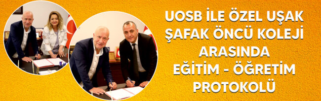 Uşak Organize Sanayi Bölgesi Müdürlüğü ile Özel Uşak Şafak Öncü Koleji Anaokulu arasında, eğitim ve öğretim ücretlerinde Uşak OSB çalışanlarına ve çalışanlarının birinci derece yakınlarına %15 indirim sağlayacak olan iş birliği protokolü, UOSB Yönetim Kurulu Başkanı Halil AĞAOĞLU ve Özel Uşak Şafak Öncü Koleji Fen ve Anadolu Lisesi Müdürü Aydın MANAVKAT ve Şafak Öncü Koleji…
