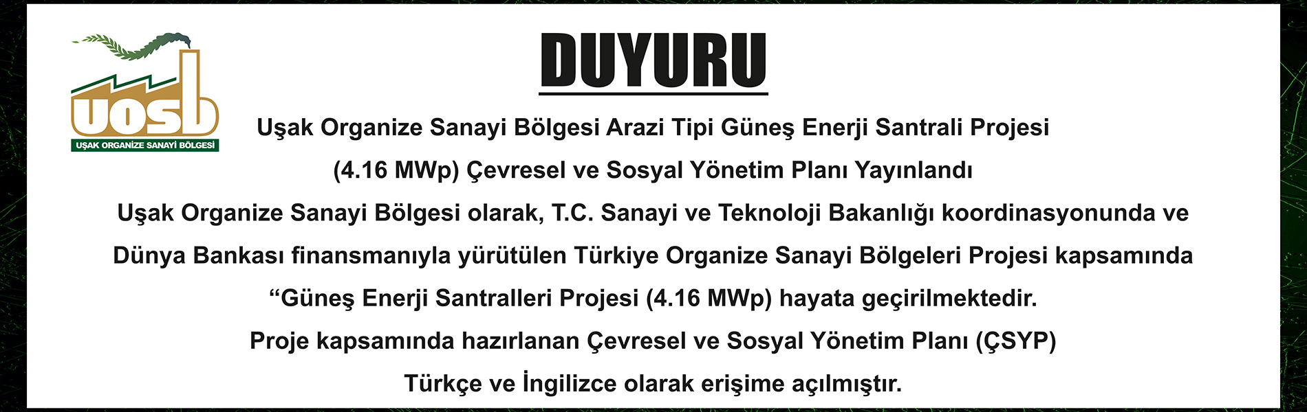 Usak Osb Cevresel ve Sosyal Yonetim Planı (Csyp) indirmek için tıklayınız.