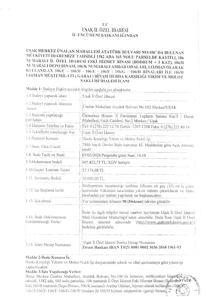 Özel İdare İhale İlanı