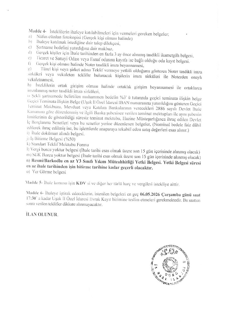 3. Özel İdare İhale İlanı